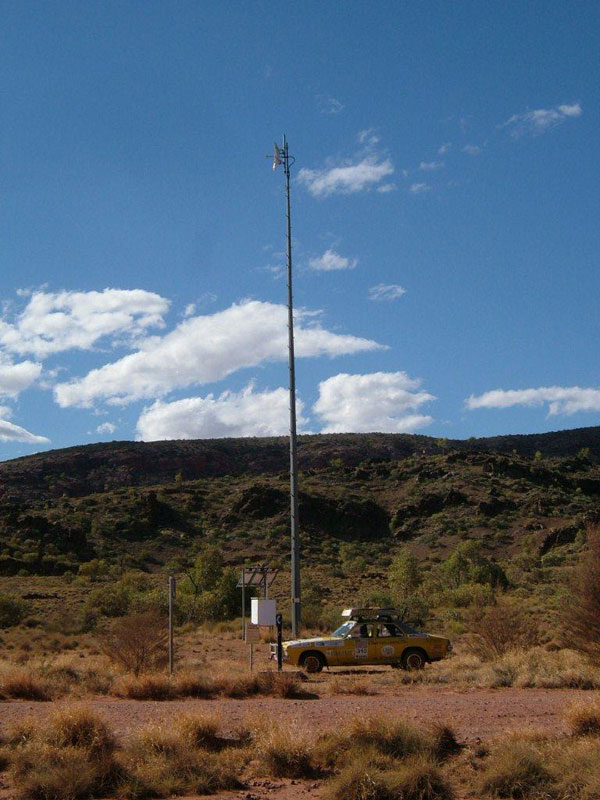 These loudspeaking outdoor phones can be placed in the harsh Australian outback, powered by a solar panel and equipped with a satellite dish for excellent coverage.